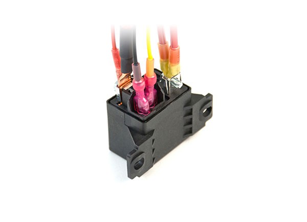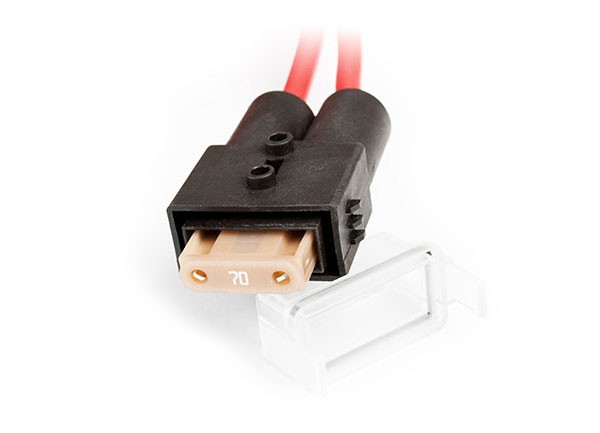 Utěsněné pojistkové pouzdro pro 70 A pojistku zajišťuje okruhu ochranu a zároveň umožňuje jednoduché odpojení celého systému při údržbě nebo úpravách.