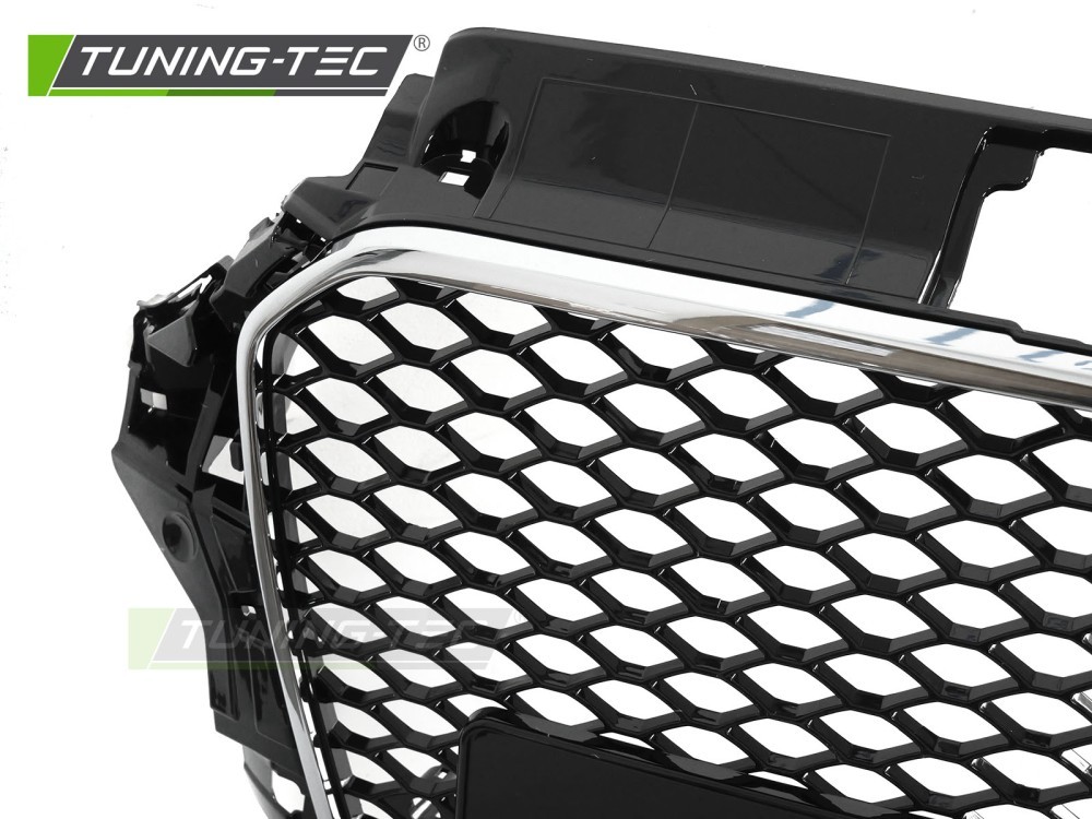 Audi A3 8V 2012-2016 - Přední maska ČERNÁ LESKLÁ s chrom rámečkem s PDC