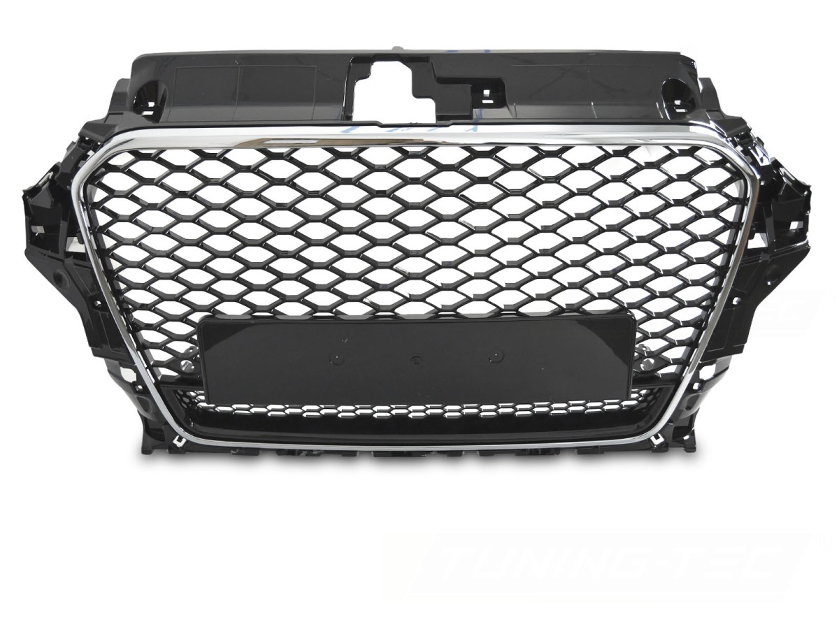 Přední maska SPORTS možností připojení parkovacího senzoru.LESKLÁ ČERNÁ / CHROM RÁMEČEKPasuje pro:Audi A 3 8V 2D CABRIO 2012-201 6Audi A 3 8V 3D HATCHBACK 2012-201 6Standardní nárazník a S-Line nárazník.V sadě:- PDC držáky - držák SPZVíce informací