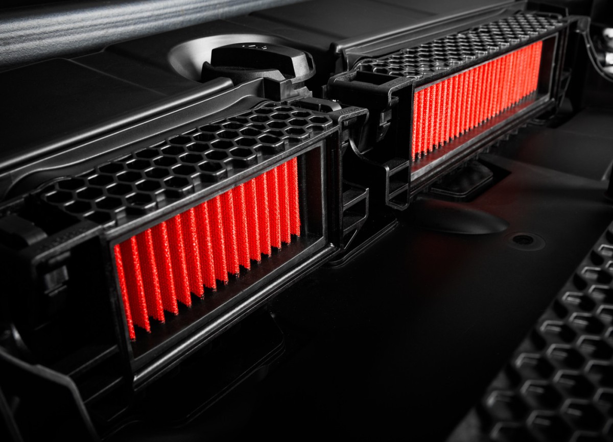 Eventuri přepracovalo vložky vzduchových filtrů, které jsou nově nahrazeny vysoce propustnými sportovními filtry se špičkovými filtračními schopnostmi. Netkaná textilie, která tvoří filtrační médium je chráněna a tvarována pomocí mřížky z nerezové oceli. Vnější okraj je tvořen rámem z urethanu, který přesně pasuje do továrních pouzder a utěsňuje okolí filtrů.