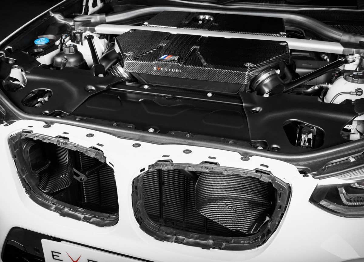 Ačkoliv je sání pro BMW X3M / X4M na první pohled nevzhledné, jedná se o chytře navržený způsob přívodu vzduchu do motoru. Vedení vzduchu od filtrů k turbodmychadlu je velmi přímé a nemění směr, jako tomu bývá u konvenčních airboxů sání. V tomto případě se tedy Eventuri spíše než na kompletní změnu vedení vzduchu a výměnu airbocu zaměřilo na vylepšení stávajícího řešení s ohledem na lepší propustnost vzduchu a efektivnější izolaci proti prostupování tepla do sání. Tovární filtry jsou tak nahrazeny sportovními filtry s lepší propustností při zachování špičkových filtračních schopností. Snížení teploty nasávaného vzduchu pak pomáhají karbonové difuzory umístěné za maskou chladiče, které k filtrům přivádějí dostatek čerstvého vzduchu. Posledním dílem je pak karbonový kryt motoru, který sice nemá vliv na výkon samotného sání, ale podporuje jeho výraznější zvuk a také vypadá skvěle v motorovém prostoru.