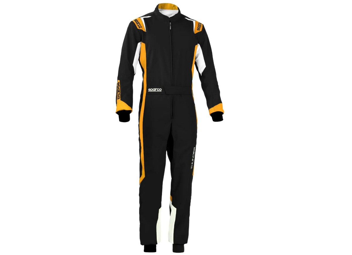 Kartingová kombinéza Sparco Thunder, homologace FIA, barva: černo-oranžová