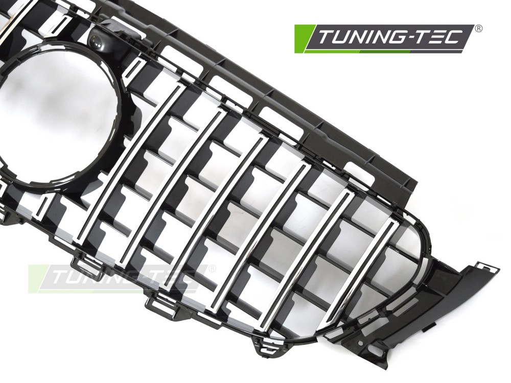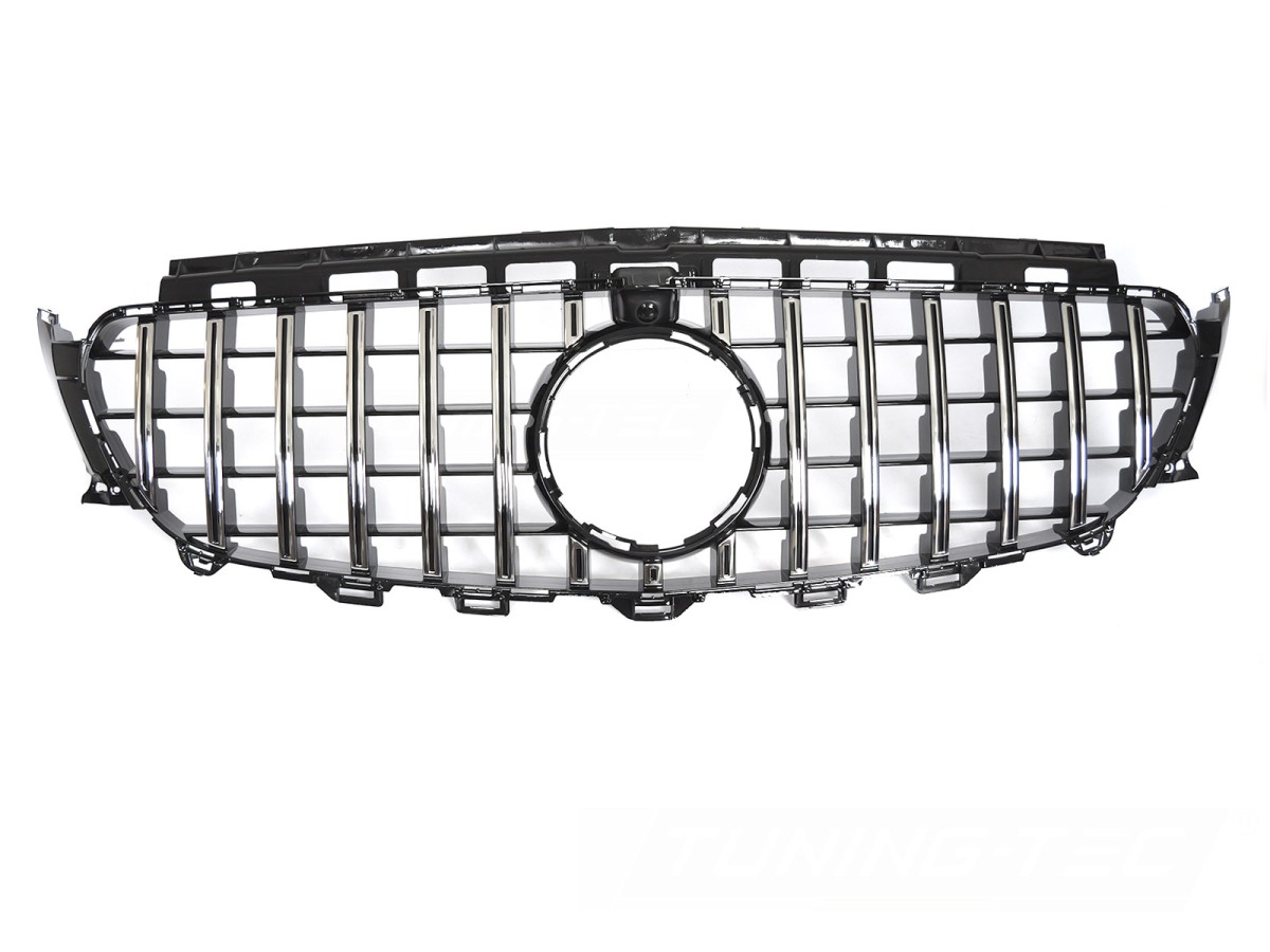 Přední maska GT style.Černá chromováPasuje na emblém z původní mřížky chladiče.S prostorem pro kameru.Pasuje pro:MERCEDES E-CLASS W213 LIMOUSINE 2016-2019MERCEDES E-CLASS S213 KOMBI 2016-2019Více informací
