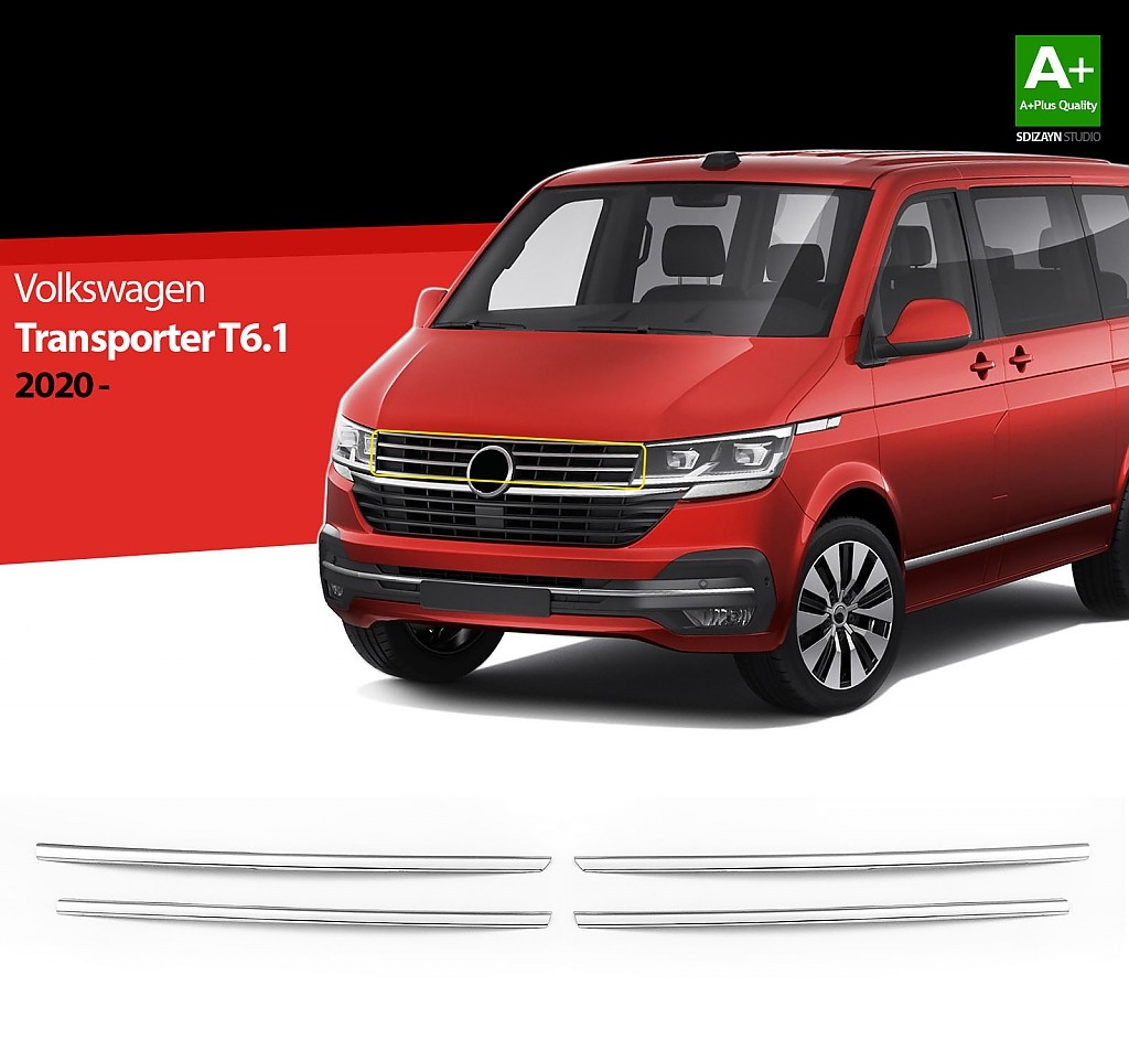 sada (4ks) chrom - nerez lišt na přední masku pro Volkswagen Transporter T6.1, od r.v. 2019->>