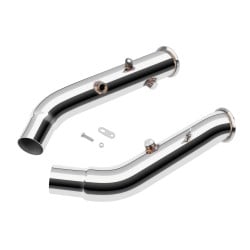 Downpipe je vyrobena z vysoce kvalitní nerezové oceli s tloušťkou stěny 1,5 mm, což zaručuje mimořádnou pevnost, tepelnou odolnost a dlouhou životnost. Každý kus je CNC opracován pro dokonalou přesnost, 100% proces výroby a perfektní dosednutí na tovární body.
