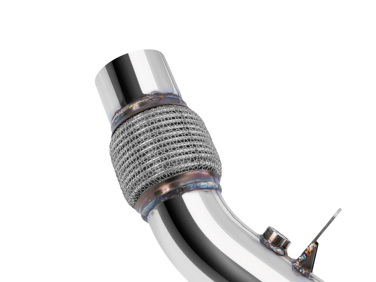 Downpipe je vyrobena z vysoce kvalitní nerezové oceli s tloušťkou stěny 1,5 mm, což zaručuje mimořádnou pevnost, tepelnou odolnost a dlouhou životnost. Každý kus je CNC opracován pro dokonalou přesnost, 100% proces výroby a perfektní dosednutí na tovární body.