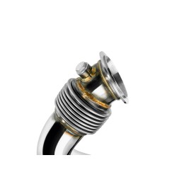 Downpipe je vyrobena z vysoce kvalitní nerezové oceli s tloušťkou stěny 1,5 mm, což zaručuje mimořádnou pevnost, tepelnou odolnost a dlouhou životnost. Každý kus je CNC opracován pro dokonalou přesnost, 100% proces výroby a perfektní dosednutí na tovární body.