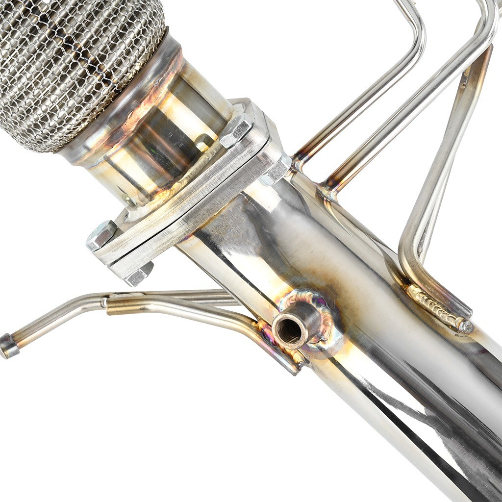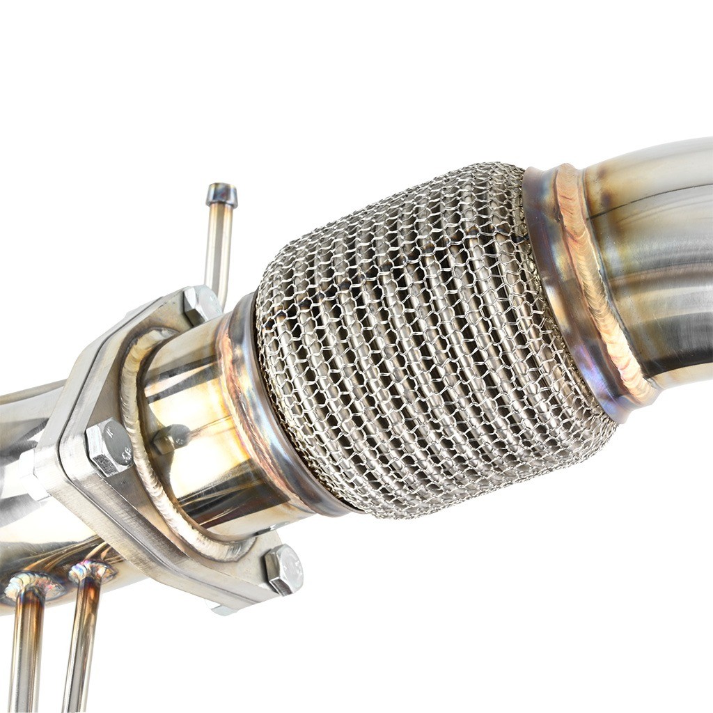 Downpipe je vyrobena z vysoce kvalitní nerezové oceli s tloušťkou stěny 1,5 mm, což zaručuje mimořádnou pevnost, tepelnou odolnost a dlouhou životnost. Každý kus je CNC opracován pro dokonalou přesnost, 100% proces výroby a perfektní dosednutí na tovární body.