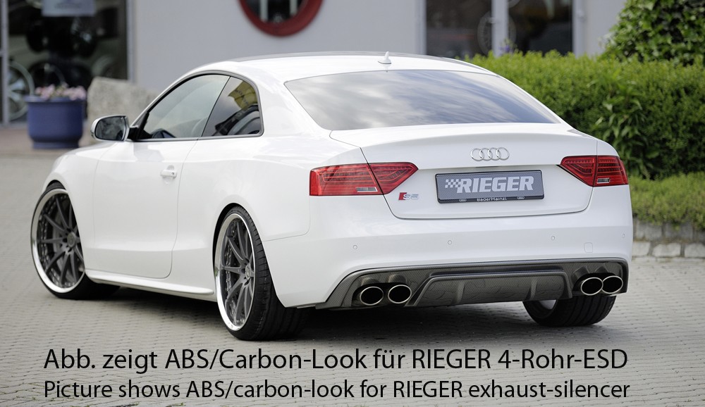 Rieger vložka zadního nárazníku pro Audi A5 S5 B8, B81 kabriolet, kupé po faceliftu, plast ABS lakovaný do černé lesklé barvy, S-Line, pro orig. dvojité koncovky na obou stranách