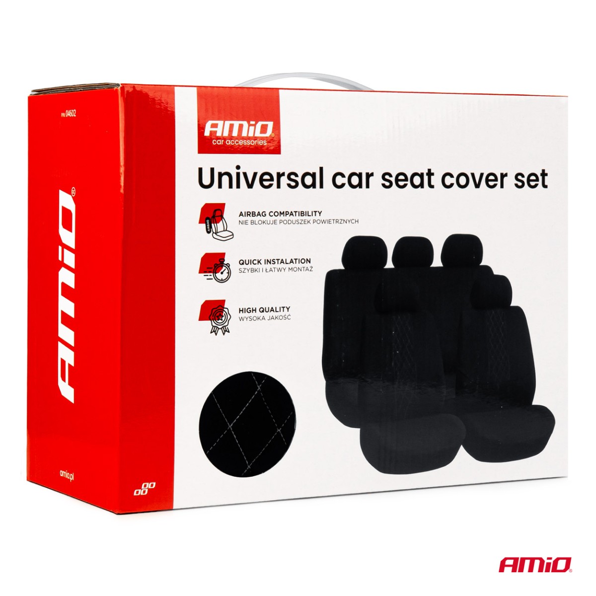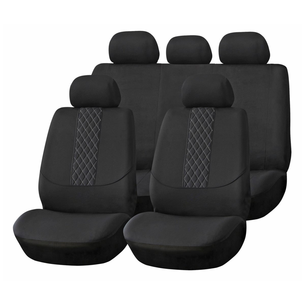 Sada 9 kusů obsahuje potahy na dvě přední sedačky, dělené zadní sedadlo a sadu opěrek hlavy. Univerzální provedení vhodné pro většinu modelů osobních automobilů.