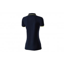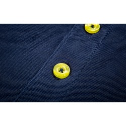 Dámská tmavě modrá polokošile vyrobená z bavlněného piqué s detaily v limetkové žluté barvě na rukávech, límci, rozparcích a knoflíkové léze.