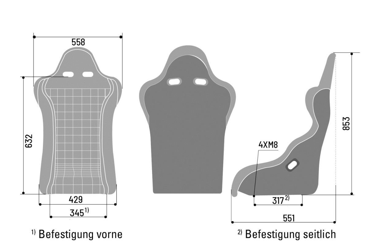 U sedaček s bočním uchycením je způsob instalace shodný se sedačkami se spodním uchycením, ale oproti nim je nutné je doplnit ještě o boční konzole / držáky, které přesouvají montážní body ze strany do spodu. Ptáte se proč tedy nemají tyto sedačky v základu také uchycení zespodu? Sedačky s bočním uchycením jsou zpravidla skořepinové sedačky se složitějším tvarováním, kde spodní strana není dostatečně rozměrná pro umístění montážních bodů. Boční uchycení také umožňuje co nejnižší posez v sedačce.