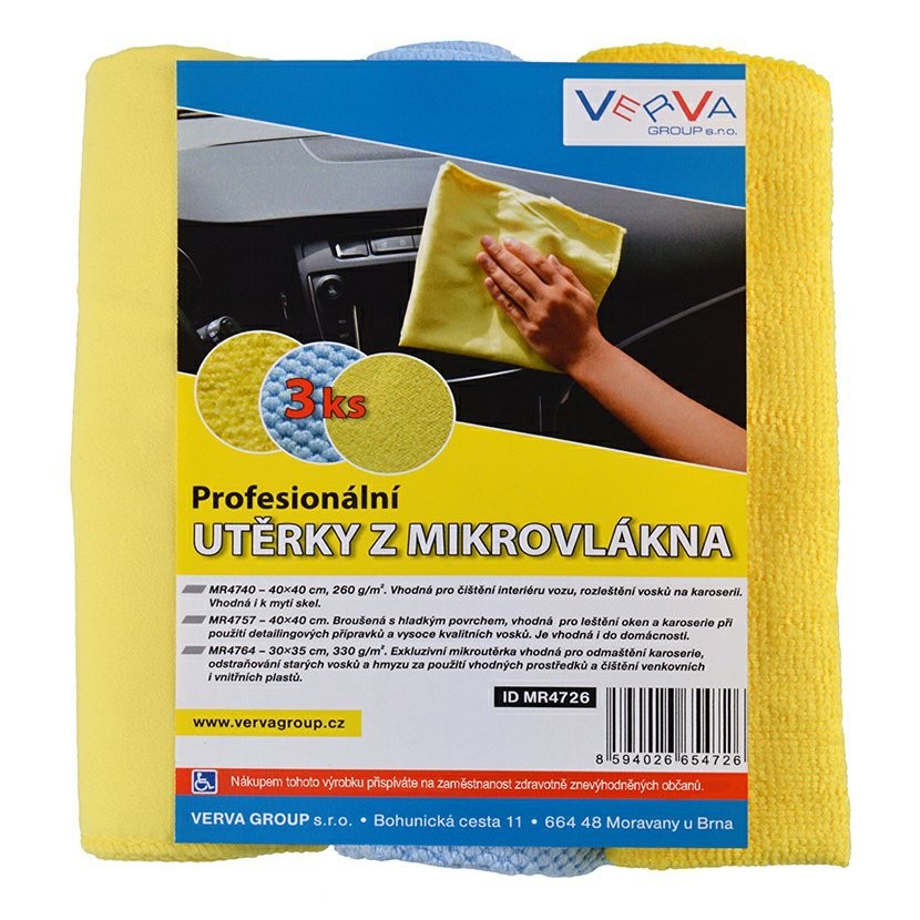 1 x MR4740, 40 x 40 cm, 260 g/m2: vhodná pro čištění interiéru vozu, rozleštění vosku na karosérii. Vhodná i k mytí skel.