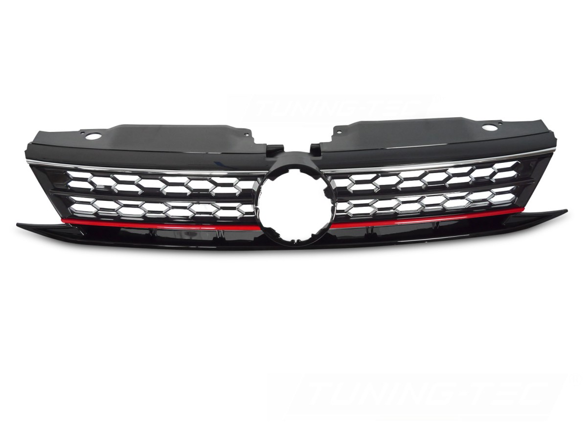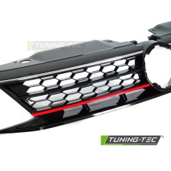 Přední maska ​​SPORTOVNÍ STYLLESKLÁ ČERNÁ S ČERVENÝMI A CHROMOVANÝMI LINKAMIPasuje pro:VOLKSWAGEN JETTA VI LIMOUSINE 2014-2018Více informací